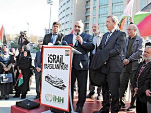 "Bir gün gelecek Allah'ın izniyle bu ördüğünüz duvarların arkasına siz hapsolacaksınız, dedik. Nasıl ki bir Filistinli çocuk, tedavi olmak için yurtdışına çıkamıyorsa, sizin engelinizle karşılaşıyorsa, öyle davalarla karşılaşacaksınız ki sizler de, Mavi Marmara gemisine saldırı emrini verenler de, saldıran askerler de artık işgal ettiğiniz Filistin topraklarına hapsolacaksınız. Yeryüzüne yaydığınız servetinizi kontrol edemeyeceksiniz. Bunlar, İsrail'den mallarını kaçırdılar. Bunlar, Cumhurbaşkanımız Recep Tayyip Erdoğan'ı, Başbakanımız Ahmet Davutoğlu'nu, İHH'yı uluslararası terörist ilan etmek istediler. Bunu yapamadılar, çünkü biz haklıydık. Şimdi Amerika'da, ambargoyu uygulayan ilk başbakan Ehud Barak mahkemeye çekildi ve uluslararası terör suçu işlemekten mahkeme önüne çıkıyor. İspanya'da Netanyahu, Liberman ve kabinesinden 6 kişi ile kanlı, cani, terörist eski MOSSAD başkanı, tutuklama kararıyla karşı karşıya kaldı. İsrail panikte. İsrail'e yeni sürprizlerimiz var. Daha birçok yerde bu davalarla karşılaşacaksınız."
