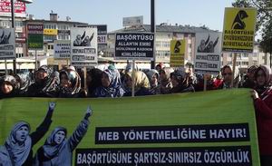 Halen pek çok okulda başörtülü eğitim görme ısrarlarından dolayı pek çok kızımız baskılara maruz kalmaktalar. Kimi yerlerde Gestapo zihniyetli idareciler ve kişiliksiz, korkak yetkililer yüzünden 13-14 yaşlarındaki çocuklarımız okuldan okula sürgün edilmekteler. 12 Eylül ve 28 Şubat darbe süreçlerinde belki bu tür tablolar sıradan karşılanıyor, vaka-ı adiyeden addedilebiliyordu. Sizin bu zalimlerden ve zulüm dönemlerinden farkınız sadece İmam Hatip okullarında ve seçmeli Kuran derslerinde başörtüsü takabilme serbestîsi mi olacak? Buna razı olacak mısınız? Bilin ki, biz asla razı olmayacağız!