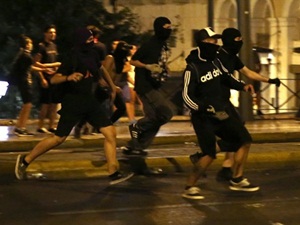 Atina'nın Klathmonos Meydanı'nda toplanan binlerce protestocu, AB ve hükûmet karşıtı sloganlar atarak parlamento binasına yürüdü.