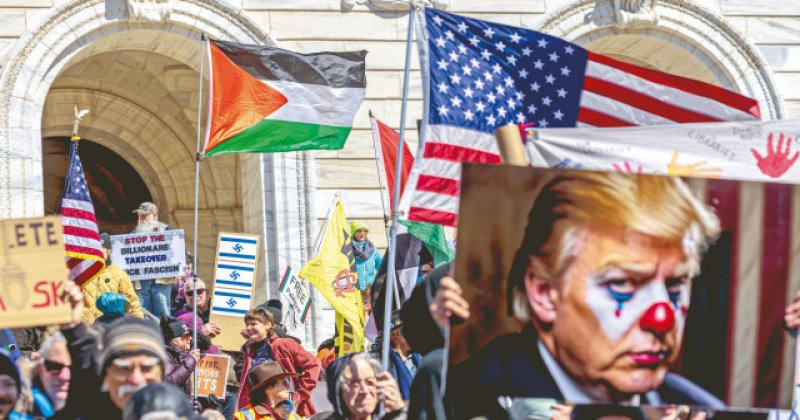 ABD’nin 50 eyaletinde eş zamanlı yaklaşık bin 200 protesto gösterisi düzenlendi. ABD Başkanı Donald Trump ve Hükümet Verimliliği Departmanı’nın (DOGE) başındaki Elon Musk’ın politikalarını protesto etmek isteyen binlerce kişi başkent Washington DC ve New York şehri başta olmak üzere ülke genelinde sokaklara döküldü. Başkent Washington’da kalabalık, "Bilimden elinizi çekin", "Yenilebilir enerjiden elinizi çekin", "Sosyal güvenlikten elinizi çekin" "Nazi Musk ve palyaço buradaki tek israf. Bizim demokrasimiz satılık değil", "Demokrasiden elinizi çekin", "Trump'ı azledin", "Elon Musk sen hainsin", "Nefreti sınır dışı edin" pankartlarıyla Trump ve Musk’a tepki gösterdi.
