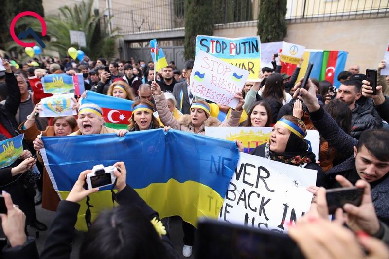 Azerbaycan bilindiği üzere Rusya’yla çok yakın ilişkiler içerisinde olan bir devlet. En son Kremlin’de gerçekleşen Putin-Aliyev görüşmesinde kamuoyu önünde bu yakınlık bir kez daha sergilenmişti. Tüm bunlara rağmen Azerbaycan halkının da Rusya’nın Ukrayna’yı işgali karşısında Ukrayna halkının yanında olduğunu gösterircesine başkent Bakü’de kalabalık bir miting düzenlendi.