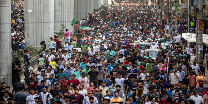 Ülke çapındaki protestolarda 3 Ağustos Cumartesi günü yankılanan "tek nokta istifa sloganı" -Ek Dafa, Ek Dabi- Arap Baharı'nın sloganı olan "Halk rejimi yıkmak istiyor" sloganını anımsatırken, özgürlük için çabalayan toplumun her kesiminden insanların kitlesel olarak bir araya gelmesinin yarattığı umut ve coşku görüntüleri de aynı şekildeydi. Ancak görüntülerin ötesinde, Bangladeş'in tarihi hareketi ile Arap Baharı arasındaki en önemli paralellik, itici güçleridir: kitlelerin, gençlerin, orta ve alt sınıfın, yozlaşmış, korku taciri diktatörlükler tarafından teşvik edilen ciddi eşitsizlik ve adaletsizliğe karşı bastırılmış hayal kırıklığı ve sosyo-ekonomik şikayetleri.