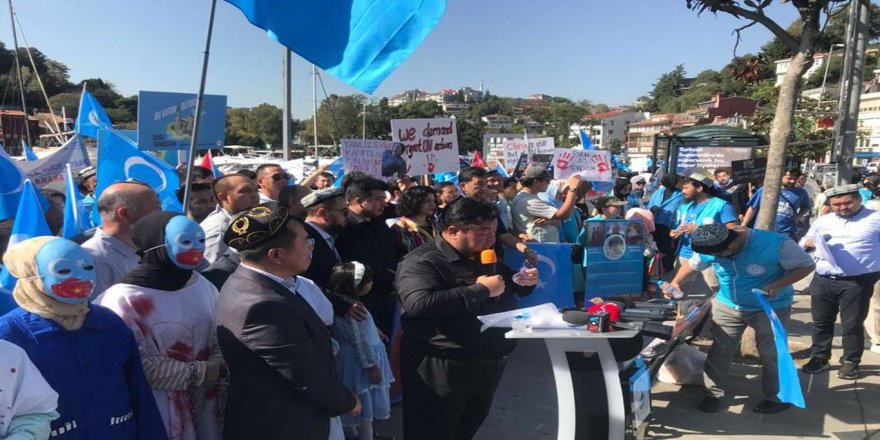 Sarıyer'de bulunan Çin'in İstanbul Başkonsolosluğu önünde toplanan grup adına basın açıklamasını okuyan Uluslararası Doğu Türkistan STK'lar Birliği Başkanı Hidayet Oğuzhan, ülkelerinde uygulanan soykırım, asimilasyon, kültürel varlıklar ve dini motiflerin yok edilmesi, yasaklanması gibi zulümlerin son bulması için uluslararası kuruluşlara destek çağrısında bulundu. 1 Ekim, 1949 yılında İşgalci Çin güçleri tarafından işgal edilen Doğu Türkistan'ın bugüne kadar Çin'in işgal politikalarına maruz kaldığını hatırlatan Oğuzhan, "İşgalci Çin Doğu Türkistan'da her türlü sömürü faaliyetlerini yürütmekte, asıl Müslüman halkı asimile etmek ve onları Çinlileştirebilmek için tüm devlet aygıtını kullanmaktadır. Çin'in bu asimile pilatikası Doğu Türkistanlıların kimliğinin yok edilmesi, Doğu Türkistan'ının demografik yapısının işgal güçleri tarafından değiştirilmesi ve bu kapsamda dil, din yasağı, serbest seyahat yasağı, doğum yasağı gibi yasaklarının yanı sıra, tarihi eserleri, camileri ve Doğu Türkistan'a özgün medeniyet sembolleri tahrip etmektedir. İşgalci Çin bu tür politikaları sonucu 73 yıldır milyonlarca Doğu Türkistanlı hayatını kaybetmiştir." dedi.
