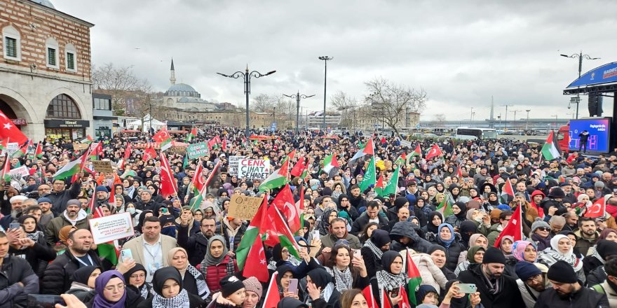 Filistin İnsiyatifi'nin çağrısıyla bir araya gelen kalabalık Eminönü Meydanı'na yürüyüş gerçekleştirdi.