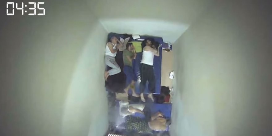 Görüntülerde, Açıkkollu’nun 1 kişi için yapılan 6 metrekarelik hücrede 4 kişiyle birlikte kaldığı görülüyor.