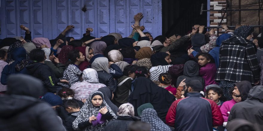 Haber görselinde: Filistinli kalabalık, Refah'taki bir fırından ekmek almak için mücadele ediyor, 18 Şubat 2024. Uluslararası yardım kuruluşları, Siyonistler ile Hamas arasındaki savaş nedeniyle Gazze'nin gıda, ilaç ve diğer temel malzeme sıkıntısı çektiğini söylüyor.
