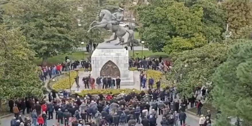 Anıt Park içinde bulunan Mustafa Kemal anıtına yapılan saldırının ardından ADD, CHP, İYİ Parti temsilcileri ve çok sayıda vatandaş anıtta toplanarak halka oluşturdu.
