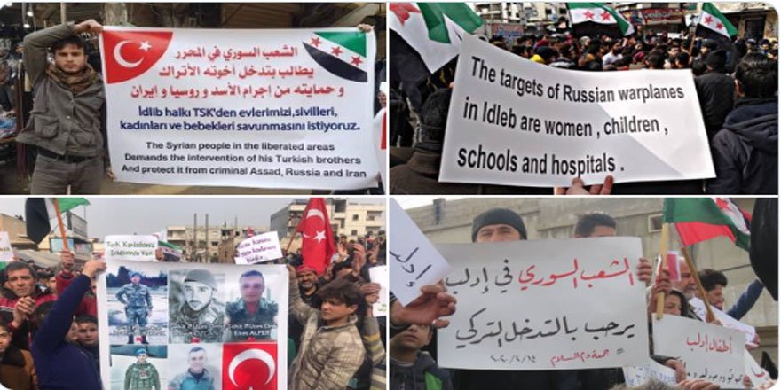Siviller, kuzey Suriye'deki çeşitli şehirlerde Rusya ve Suriye bombardımanına son verilmesi çağrısında bulunan gösterilerde yürüdü ve Türk kuvvetlerinin onları Esad rejimi, Rusya ve İran'ın baskısından korumak için müdahale etmelerini istedi