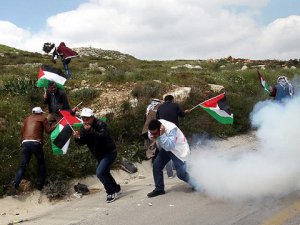 İşgal askerlerinin, Filistin Toprak Günü'nün 40. yılı dolayısıyla Batı Şeria'da düzenlenen gösterilere, cop, gerçek ve plastik mermi ile göz yaşartıcı gaz kullanarak saldırdığı bildirildi.