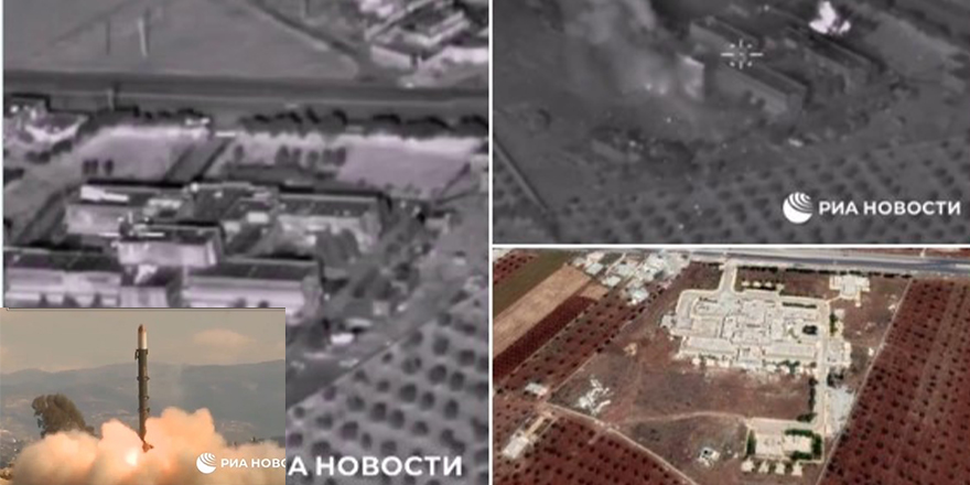 Suriye’nin Halep iline bağlı Azez bölgesinde bulunan bir hastanenin İskender füzeleri ile patlatıldığını Rusya Savunma Bakanlığı’nın paylaştığı görselde görmek mümkün.