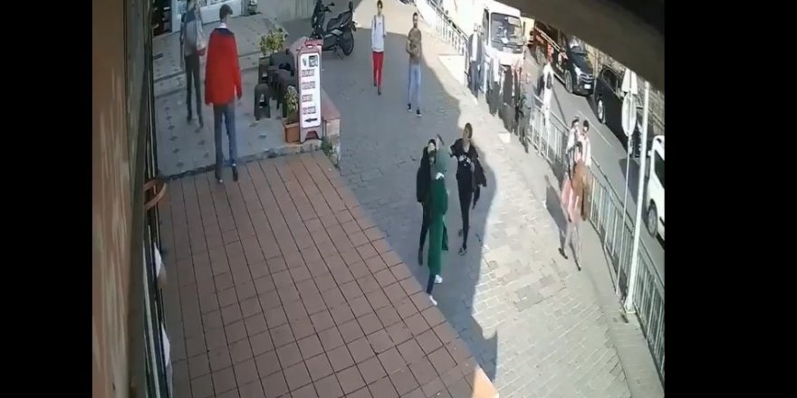 Bir güvenlik kamerasına yansıyan görüntülerde kendi halinde yürüyen kızlara başka bir kadının sertçe saldırdığı gözden kaçmadı.