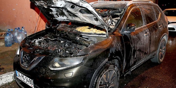 Mustafa Kemal Mahallesi 3026 Sokak'ta park halindeki 34 PG 5490 plakalı cip de yüzleri maskeli kişiler tarafından kundaklandı.