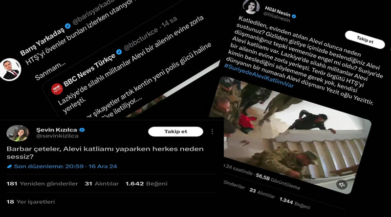 Yıllardır Esed, İran ve Rusya zulmü altında yüzbinlerce insan katledilirken, işkencelerden geçirilirken, şehirlerin üzerlerine kimyasal bombalar atılırken hiç seslerini çıkarmayanların devrim sonrası bir alevinin evi işgal edildiğinde “Alevi Katliamı var” yaygarası koparması kadar iki yüzlülük eşi benzeri az bulunur bir durum.
