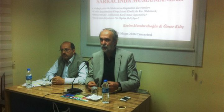 Muhafazakârlık-Modernizm-Kapitalizm Kavramlarına değinerek sözlerine başlan Ömer Kılıç, bu kavramları anlayabilmek için yakın Avrupa tarihi ve siyasi ortamı hakkında bilgi sahibi olmanın önemine değindi. Kilise ile Kral arasında sıkışan halkın yaşadığı zulümden çıkış yolu bulmak için bu kavramların üretildiğini belirten Kılıç, bu kavramların hiçbirinin İslam coğrafyasına ait olmadığını söyledi.
