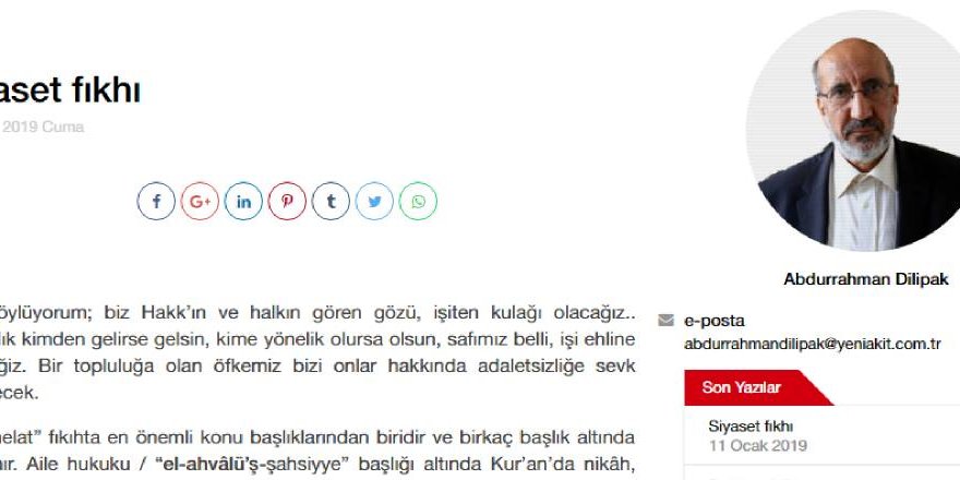 Abdurrahman Dilipak’ın Yeni Akit’te yayımlanan konuyla alakalı yazısı (11 Ocak 2019) şöyle: