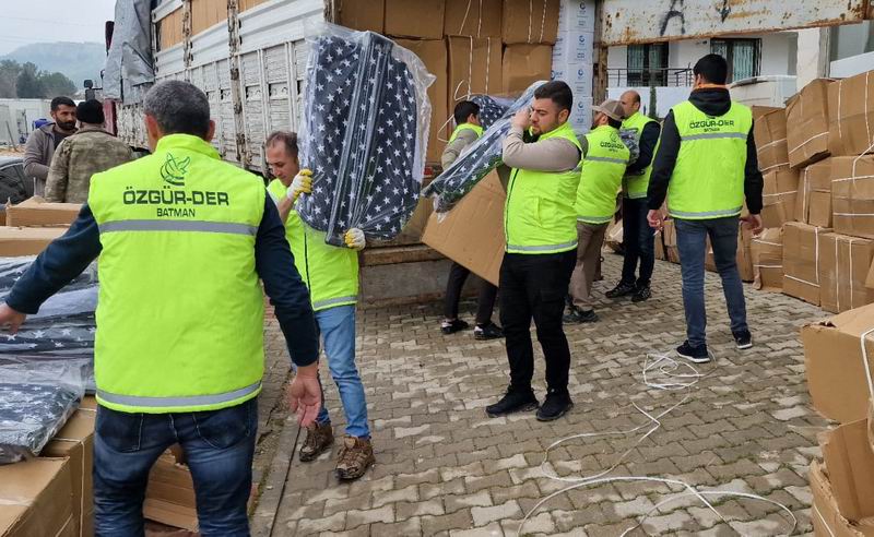 Özgür-Der Genel Başkanı Rıdvan Kaya, Diyarbakır ve Batman Özgür-Der gönüllülerinin de destek verdiği yardım organizasyonuyla depremzede ailelerin yükü bir nebze olsun hafifletilmeye çalışıldı.