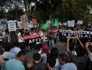 Amerika’da çekilen ve İslam dünyasında büyük çaplı eylemlere yol açan Hz. Muhammed’e hakaret içerikli film bugün Fatih’te de protesto edildi.