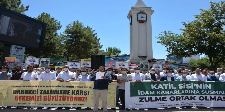 Bingöl İslami Kardeşlik ve Dayanışma Platformu, Sisi cuntasının idam kararını protesto etmek için Dörtyol Saat Kulesi önünde basın açıklaması gerçekleştirdi. Sunuculuğunu İbrahim Kılıç'ın yaptığı ve çok sayıda kişinin katılım gösterdiği programda M. Fatih Kartal basın açıklaması metnini okurken, Cihan Bozaba’da dua yaptı.