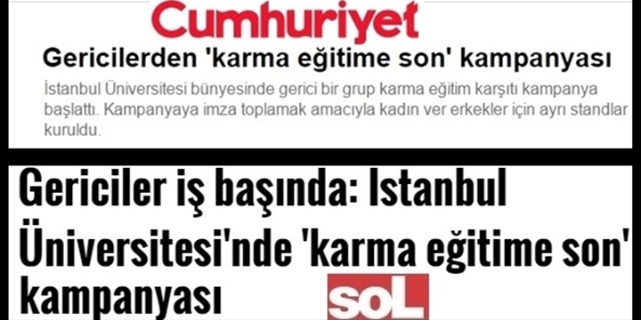 Öğrenciler tarafından bu dayatmanın son bulması ve İslami olana, yani fıtri olana dönülmesi gerektiği yönündeki çağrı çarpıtılarak soL Haber ve Cumhuriyet’in internet sitelerinde “Gericiler İş Başında: İstanbul Üniversitesi’nde ‘Karma Eğitime Son’ Kampanyası” ve “Gericilerden ‘Karma Eğitime Son’ Kampanyası” başlıkları ile yer aldı!