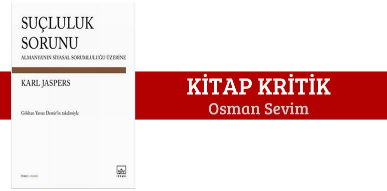 Haklı bir üne sahip Alman düşünür, yazar ve filozof Karl Jaspers (1883-1969), Almanya’da Heidelberg Üniversitesi’nde felsefe kürsüsü sahibidir. “Varoluş Felsefesinin” en önemli temsilcilerinden biri olarak üne kavuşur. Naziler, 1937’den itibaren onun ders vermesini ve basın-yayın faaliyetlerini yasaklar. Pasif bir direnişi tercih eden Karl Jaspers’in “politik bir filozof olması bu tarihten itibaren başlar”. Savaş bittikten sonra mesleğine geri döner. Heidelberg Üniversitesinde verdiği ilk dersin adı “Suçluluk Sorunu” dur. Jaspers bu kitapta fiili olarak maruz kaldığı ve bizzat yaşadığı Almanya’daki nasyonal sosyalizmin o tahrip gücü yüksek etkilerine; birey ve toplum üzerinde bıraktığı yıkıcı izlerine, Almanların, yaşananlar ile ilgili bireysel ve toplumsal konum alışlarına, sorumluluklarına ve maddi-manevi “suçlarına” mercek tutuyor. Olup bitenleri politik ve sosyo-psikolojik olarak tahlil edip masaya yatırıyor. Ayrıca bunları “insani ve ahlaki” yönden analiz ederek birey ve toplumun inanç, davranış ve tutumlarını ele alıp değerli sonuçlar çıkarıyor.