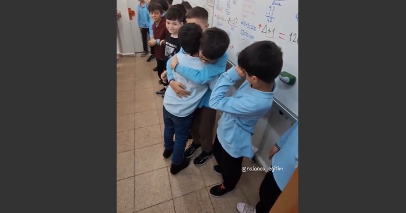 Vedada öğretmen ve arkadaşlarıyla sarılan Suriyeli Muhammed'in görüntüleri izleyenlere duygulu anlar yaşattı.
