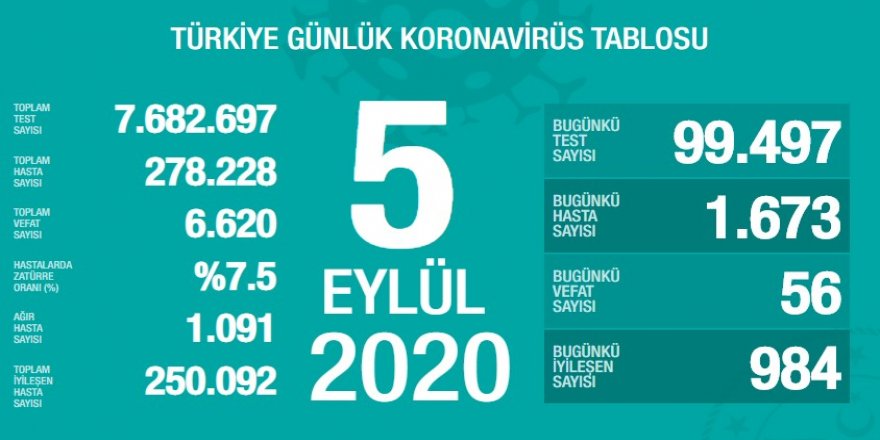 Toplam vaka sayısı ise 1673 artarak 278 bin 228'e çıktı. 948 kişinin de virüsü yendiğini belirten Bakan Koca, toplam iyileşen hasta sayısının 250 bin 92 olduğunu bildirdi.