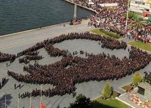 İzmir Cumhuriyet Meydanı'nda toplanan 2 bin 400 kişi 'Canlı Atatürk' portresi oluşturdu.
