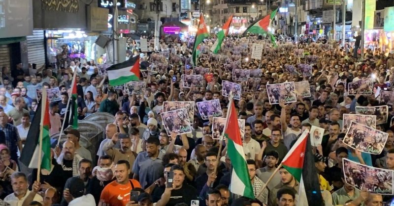 Ürdün'de yüzlerce kişi, katil İsrail'in Gazze Şeridi'ndeki saldırılarını protesto edip, Filistin direnişine destek amacıyla gösteri düzenledi.