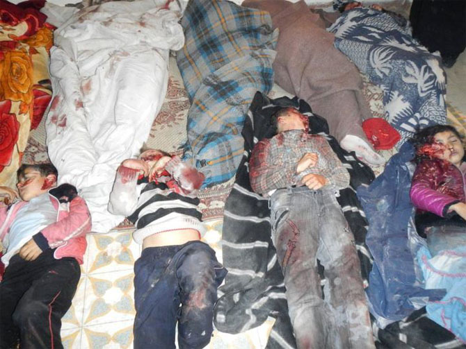 Humus'un Kerem Zeytun bölgesinde yaşanan katliamın görüntüleri.