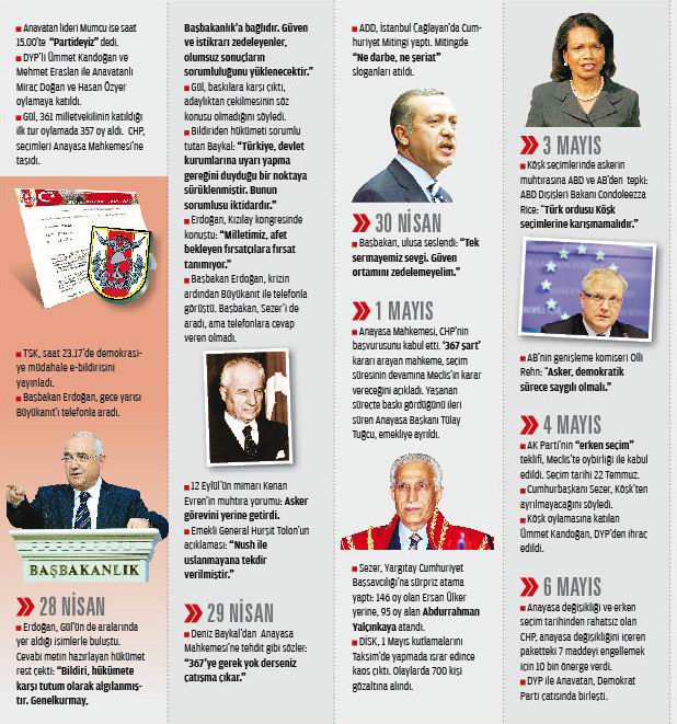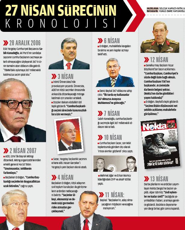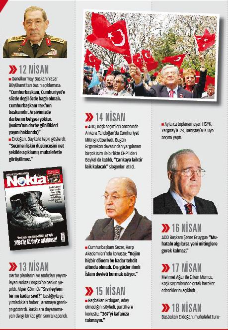 27 Nisan 2007'de yayınlanan e-muhtıranın konu ettiği olaylar daha önce Cumhuriyet, Hürriyet, Milliyet, Posta gibi gazetelerinde yer aldı. Gazetelerde yayımlanan haberler adeta e-muhtıraya malzeme olacak cinstendi. Birçoğu o süreçte yalanlanmış da olsa gazetelere konu olaylar aynı mantıkla muhtıra metnine de girecekti. Muhtıradan sonra ise sivil iradeyi suçlayan ve hedef gösteren bir yayıncılık anlayışı sürdürüldü.