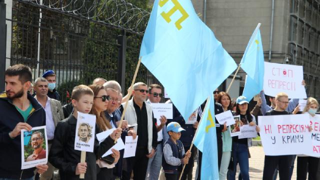 Rusya'nın Kiev Büyükelçiliği önünde yapılan gösteriye Kırım Tatar Milli Meclisi Başkanı Rıfat Çubarov, Ukrayna Milletvekili Ahtem Çiygöz ve çok sayıda kişi katıldı.