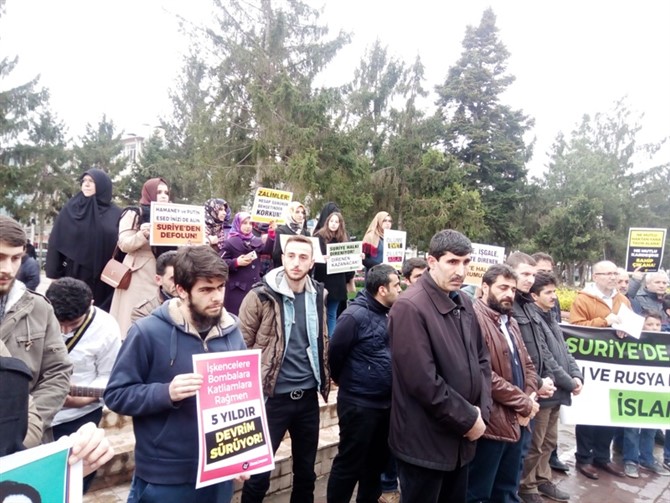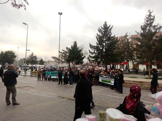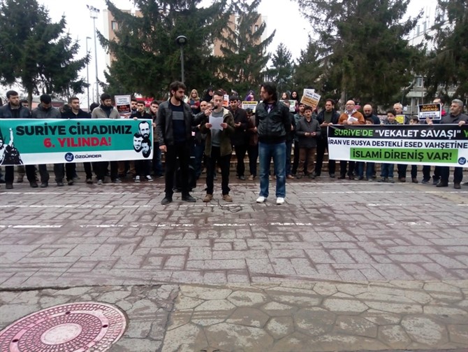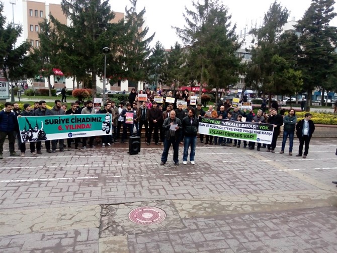 Özgür-Der Sakarya Şubesi’nin çağrısı ile Adapazarı AKM önünde toplanan müslümanlar Suriye’de altıncı yılına giren intifadayı selamladılar.