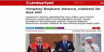Yargıtay için yapılan yeni binada adli yıl vesilesiyle yaptığı konuşmadan sonra dua eden Yargıtay Başkanı Akarca, Kemalist Cumhuriyet gazetesini pek rahatsız etti!