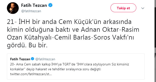 Cem Küçük kimdir, mazisi nereye dayanır, kirli ve karanlık operasyonel gazeteciliğiyle kime hizmet etmektedir? Adnan Oktar şebekesiyle olan münasebeti ne düzeydedir? Mavi Marmara seferi üzerinden İslami kimliğe karşı savaş açıp Siyonist İsrail’le ilişkileri geliştirmek üzere özel bir görevi mi vardı? Basit bir trolün iş adamlarını alenen tehdit edecek, kimi belediye ve kamu kurumlarını ısrarla hedef gösterecek, bazı gazetecileri güle oynaya işten kovduracak gücü, kudreti olabilir mi?