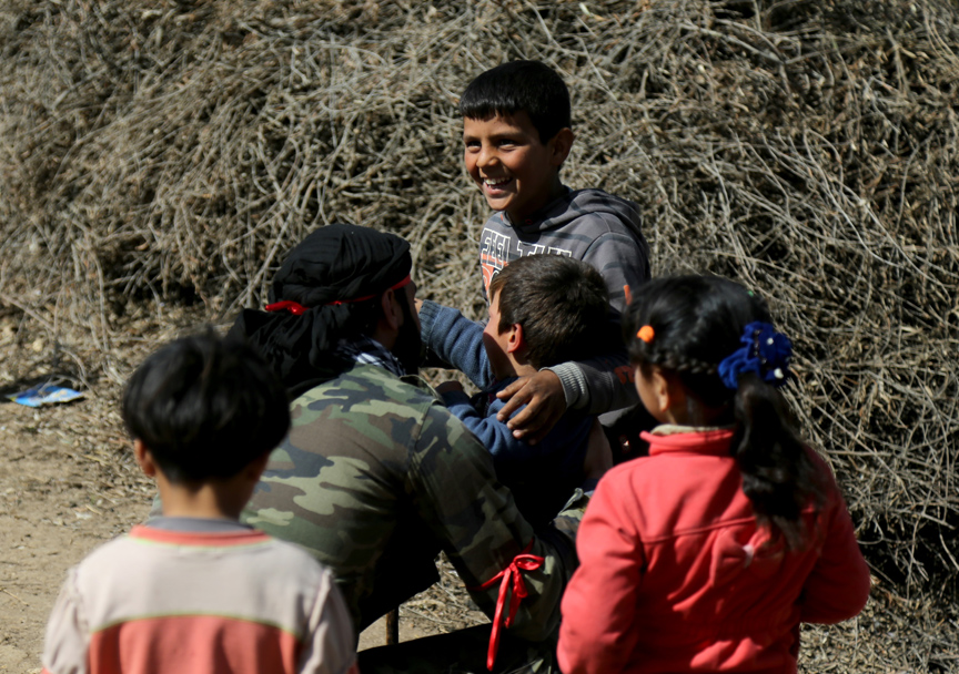 Afrin ilçe merkezine bağlı Kurt Farmez köyü sakinleri, Zeytin Dalı Harekatı kapsamında köylerini PKK/PYDlilerden arındıran Özgür Suriye Ordusu (ÖSO) mensubu akrabalarıyla buluştu.