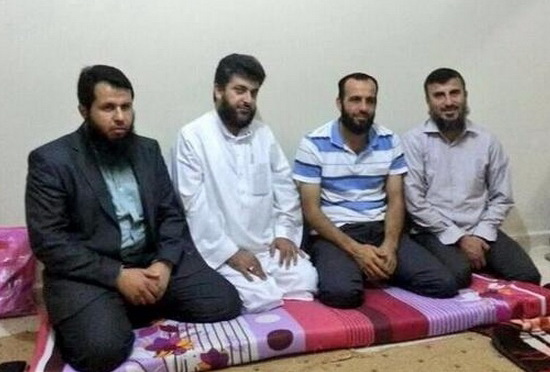Ahraruş Şam komutanı Hasan Abbud, Suquruş Şam komutanı Ebu İsa, Liva et-Tevhid komutanı Abdulkadir Salih ve Liva el-İslam komutanı Zahran Alluş bir arada...