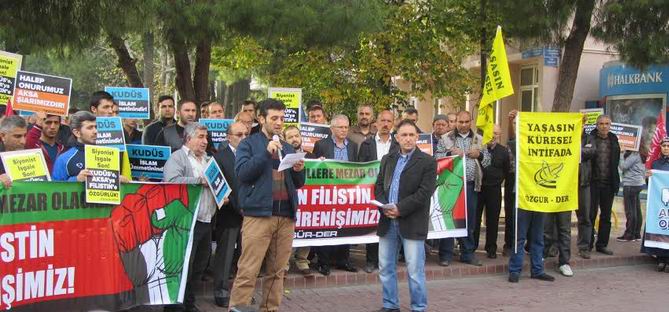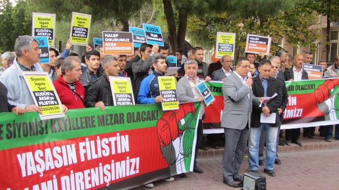 İsraiL'in Mescidi Aksa'ya yönelik tecavüzleri Manisa Akhisar'da da protesto edildi.