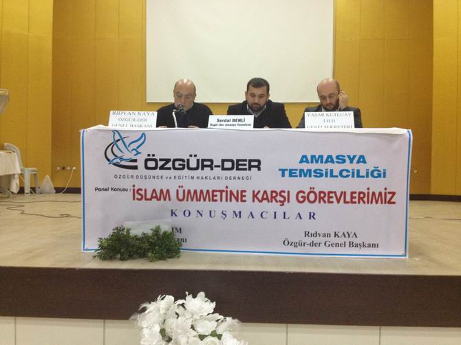 15 Aralık 2012 Cumartesi günü saat 19.30’da başlayan ve Amasya İl Özel İdaresi Düğün Salonunda gerçekleştirilen panele konuşmacı olarak Özgür-Der Genel Başkanı Rıdvan KAYA ile İHH İnsani Yardım Vakfı Genel Sekreteri Yaşar KUTLUAY katıldı.