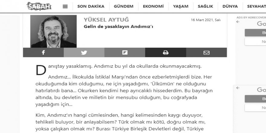 Sabah yazarından ‘andımız’ cüretkarlığı!
