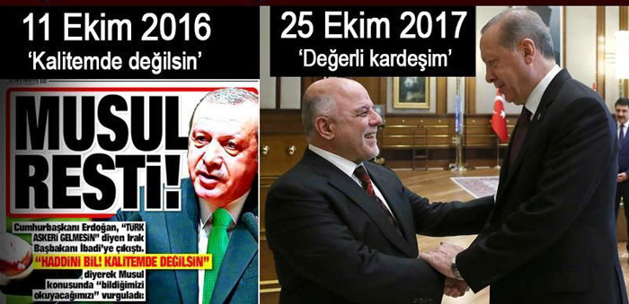 Cumhurbaşkanı Erdoğan geçtiğimiz yıl Ekim ayında, Musul operasyonu konusunda İbadi'ye çok sert tepki göstermişti.