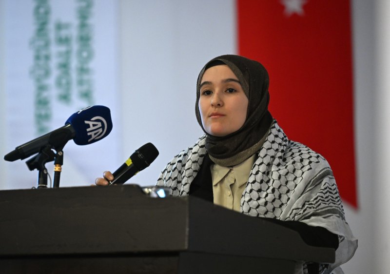 Yeryüzünde Adalet Kadın Hukukçular Platformu ile Kudüs ve Hukuk Platformunca hazırlanan "Filistinli Çocuklara Yönelik Hak İhlalleri ve Soykırım 2023 Raporu"nu, avukat Sümeyye Eminoğlu sundu.