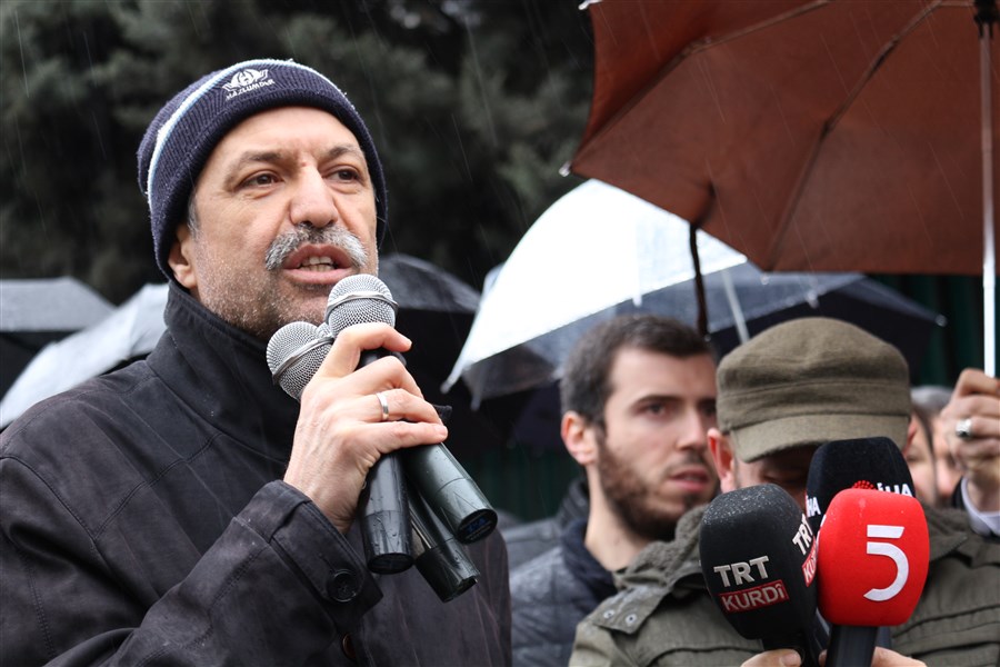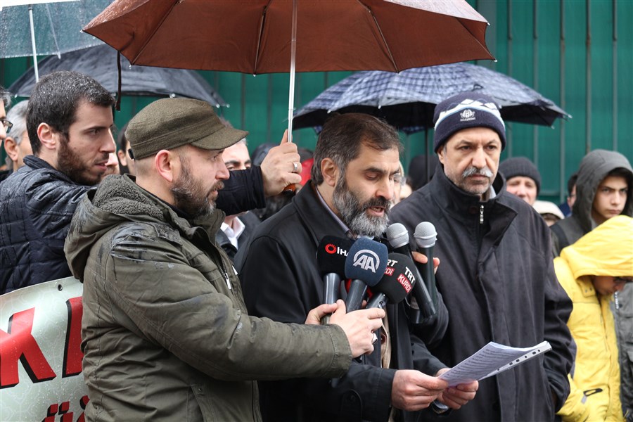 Yağan yağmura rağmen eyleme İnsan ve Medeniyet Hareketi Ankara şubesi ve Özgür-Der Ankara Şubesi’nin yanı sıra farklı sivil toplum kuruluşları da katıldı. Platform adına basın açıklamasını İHH Ankara sorumlusu Mustafa Sinan okudu.