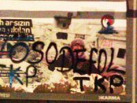 Esed’in Türkiye’deki Şebbihaları TKP’liler, Antakya’da Suriye’ye yardım çağrısında bulunan afişlere saldırdı.