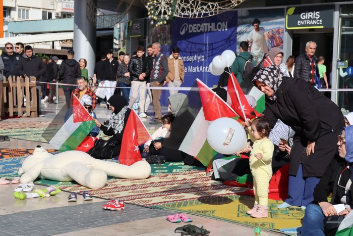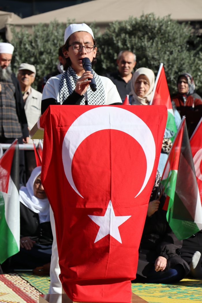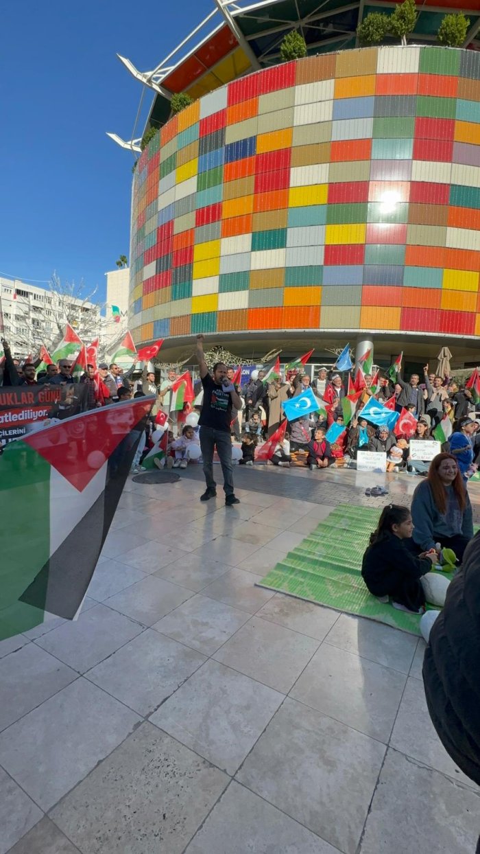 Grup adına konuşan Antalya Kudüs Platformu Başkanı Mustafa Erduran, bugün insanlığın vicdanını derinden yaralayan bir kurtuluşu dilemek, Gazze'de ve Doğu Türkistan'da öldürülen bebeklerin sessiz çığlıklarını duyurmak için bir araya geldiklerini söyledi.
