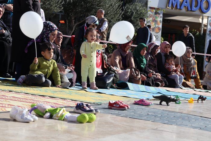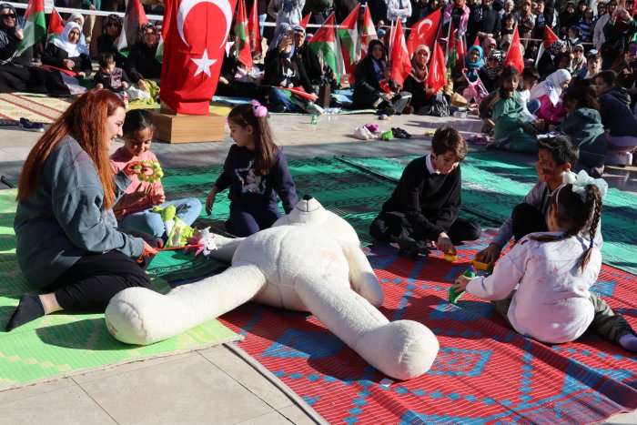 Filistin'de bebeklerin, çocukların şehit edildiğini belirten Erduran, "Bu bebekleri sevmeye doyamayan anneler, babalar, dedeler ve atalar için buradayız. Ve bundan sonra her 23 Aralık'ta Dünya Şehit Çocuklar Günü'nü yad etmek için burada olacağız." dedi.