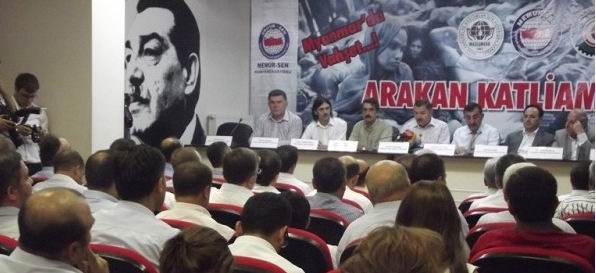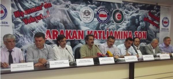 Birleşmiş Milletler, İslam İşbirliği Teşkilatı, ASEAN ve AB'nin Myanmar'da Müslümanlara dönük işlenen etnik temizlik felaketini bir an önce gündemlerine almasını isteyen MAZLUMDER, MEMURSEN ve HAK-İŞ, çağrıcı örgütler olarak, bugün Ankara'da bir basın toplantısı düzenledi.