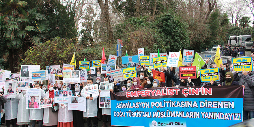 İstanbul'da yaşayan Doğu Türkistanlılar, Çin yönetimi tarafından kamplarda zorla tutulan aileleriyle görüşmek ve durumlarını öğrenmek için Çin'in İstanbul Başkonsolosluğu önünde bekleyişlerini sürdürüyor. Özgür-Der, "Asimilasyon politikasına direnen Doğu Türkistanlı Müslümanların yanındayız" pankartıyla Çin’den ailelerini geri isteyenlere destek oldu.
