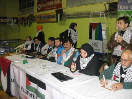 Konvoyu karşılama töreninde bir basın toplantısı düzenlendi. İHH Güneydoğu Koordinatörü Selahattin Özer, "Günlerdir Filistin için yollarda olan bu kardeşlerimizi en güzel şekilde ağırlayıp Suriye'ye uğurlayacağız. Bu konvoya bizden de katılım olacak. Filistin için yapılan bütün çalışmalara her zaman destek olacağız" dedi.