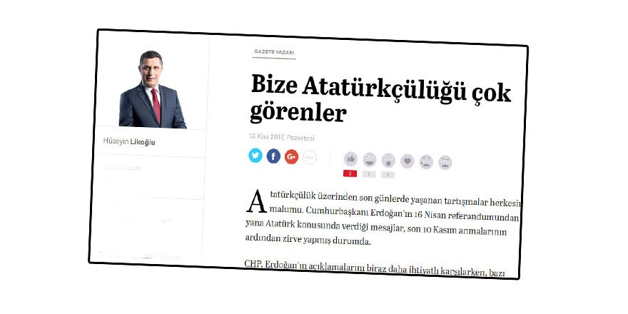 Hakan Albayrak, bugünkü yazısında “Erdoğan’ın Atatürkçülüğe ikna misyonuna itiraz ediyorum” demiş.