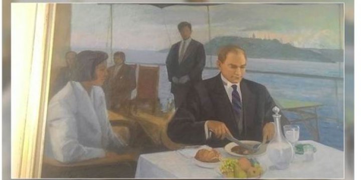 Muhalefet kulisindeki mareşal üniformalı Atatürk tablosunu kaldıran Meclis yönetimi, Savarona yatında rakı eşliğinde yemek yediği tabloyu da kaldırdı.